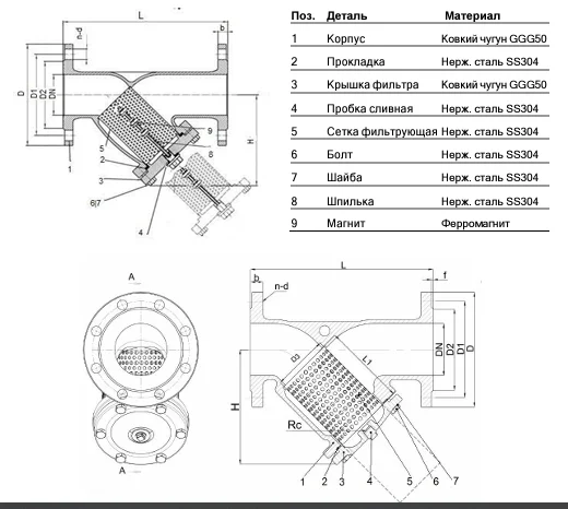 Фильтр магнитный Y-образный чугунный фланцевый Benarmo Ду50-200 Ру16