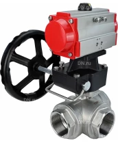 Кран шаровой DN.ru BV3232P(4pc)-SP-3WL-T-ISO-H Ду40 Ру63 стандартнопроходной трехходовой L-тип, нерж. сталь SS316, внутренняя резьба, уплотнение - PTFE, с пневмоприводом PA-DA-065 и ручным дублером MON1-250-T26-ISO с сертификатами качества. Доставка. Гарантия. В наличии! Звоните!