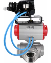 Кран шаровой DN.ru BV3232P(4pc)-SP-3WL-T-ISO-H Ду100 Ру40 стандартнопроходной 3-ходовой, L-тип, нерж. сталь SS316, внутренняя резьба, PTFE, с пн.приводом DN.ru PA-DA-083 двойного действия и эл.пневматич. позиционером DN.ru YT-1000RSN без обратной связи с сертификатами качества. Доставка. Гарантия. В наличии! Звоните!