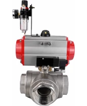 Кран шаровой DN.ru BV3232P(4pc)-SP-3WL-T-ISO-H Ду10 Ру63 стандартнопроходной трехходовой L-тип, нержавеющая сталь SS316, внутренняя резьба, уплотнение - PTFE, с пн.приводом DN.ru PA-DA-052 c пн.распределителем DN.ru 4М310-08 220В NAMUR и БПВ AFC2000 с сертификатами качества. Доставка. Гарантия. В наличии! Звоните!