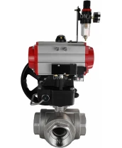 Кран шаровой DN.ru BV3232P(4pc)-SP-3WL-T-ISO-H Ду50 Ру63 стандартнопроходной трехходовой L-тип, нержавеющая сталь SS316, внутренняя резьба, PTFE, пн.приводом PA-DA-065, пн.распределителем 4М310-08 220В NAMUR, ручным дублером MON1-250-T26-ISO и БПВ AFC2000