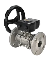 Кран шаровой DN.ru BV3131P(3pc)-FP-F-ISO-H Ду32 Ру40 трехсоставной из нержавеющей стали SS304, фланцевый, уплотнение - PTFE, полнопроходной с ISO-фланцем и редуктором DN.ru HAM RQN1-180Z-T40 с сертификатами качества. Доставка. Гарантия. В наличии! Звоните!