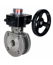 Кран шаровой DN.ru BV3232P-FP-Fb-ISO-H Ду25 Ру16 полнопроходной двухходовой, нержавеющая сталь, межфланцевый, уплотнение - PTFE, с ISO-фланцем и редуктором DN.ru HGB RQN1-180Z с индикатором положения