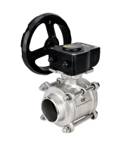 Кран шаровой DN.ru BV3232P(3pc)-FP-W-ISO-H Ду10 Ру63 полнопроходной двухходовой, нержавеющая сталь SS316, под приварку, уплотнение - PTFE, с ISO фланцем и редуктором DN.ru HAM RQN1-180Z-T40 Иваново
