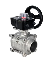 Кран шаровой DN.ru BV3232P(3pc)-FP-W-ISO-H Ду15 Ру63 полнопроходной двухходовой, нержавеющая сталь SS316, под приварку, уплотнение - PTFE, с ISO фланцем и редуктором DN.ru HGB RQN1-180Z с индикатором положения Иваново