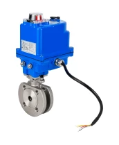 Кран шаровой DN.ru BV3232P-FP-Fb-ISO-H Ду20 Ру16 полнопроходной двухходовой, нержавеющая сталь SS316, межфланцевый, уплотнение - PTFE, с электроприводом QT-N-003EM-O1-220VAC-У1 blue