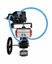 Кран шаровой DN.ru BV3232P(2pc)-FP-T-ISO-H Ду15 Ру63 полнопроходной, нерж. сталь SS316, внутренняя резьба, PTFE, с пневмоприводом PA-DA-065, ручным дублером MON1-250-T26-ISO и с эл.пневматич. поворотным позиционером YT-1000RSN с обратной связью с сертификатами качества. Доставка. Гарантия. В наличии! Звоните!