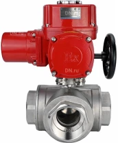 Кран шаровой DN.ru BV3232P(4pc)-SP-3WL-T-ISO-H Ду25 Ру63 стандартнопроходной трехходовой L-тип, нержавеющая сталь SS316, внутренняя резьба, уплотнение - PTFE, с 1/4-оборотным электроприводом DN.ru QT-EX-005M-O2-220VAC-У1 с сертификатами качества. Доставка. Гарантия. В наличии! Звоните!