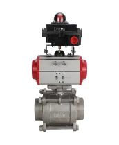 Кран шаровой DN.ru BV3232P(3pc)-FP-W-ISO-H Ду50 Ру40 SS316 полнопроходной под приварку, корпус - нержавеющая сталь с пневмоприводом DN.ru PA-SA-105 и блоком концевых выключателей APL-410N EX