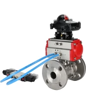 Кран шаровой DN.ru BV3232P(3pc)-FP-F-ISO-H Ду80 Ру25, трехсоставной полнопроходной фланцевый, нержавеющая сталь SS316, уплотнение - PTFE, с пневмоприводом PA-SA-140 с возвратными пружинами, с пневмораспределителем 4V320-10 220В, с БКВ APL-210N с сертификатами качества. Доставка. Гарантия. В наличии! Звоните!