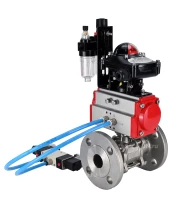 Кран шаровой DN.ru BV3232P(3pc)-FP-F-ISO-H Ду25 Ру40, трехсоставной полнопроходной фланцевый, нержавеющая сталь SS316, уплотнение - PTFE, с пневмоприводом PA-DA-052 двойного действия, с пневмораспределителем 4V320-08 220В, с БКВ APL-210N, с БПВ AFC2000 с сертификатами качества. Доставка. Гарантия. В наличии! Звоните!