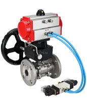 Кран шаровой DN.ru BV3232P(3pc)-FP-F-ISO-H Ду100 Ру16, трехсоставной полнопроходной фланцевый, нержавеющая сталь SS304, уплотнение - PTFE, с пневмоприводом PA-DA-130, с пневмораспределителем 4V320-08 220В, с ручным дублером MON3-700-T38-ISO с сертификатами качества. Доставка. Гарантия. В наличии! Звоните!