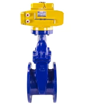 Задвижка клиновая 30ч939р (аналог МЗВ) DN.ru GVWN1414E-2W-F Ду200 Ру10 фланцевая,клин - обрезиненный, шпиндель - невыдвижной, корпус - чугун GGG-50, уплотнение - EPDM, цвет - синий, с электроприводом DN.ru MT-N-020EM-О1-380VAC-У1 с сертификатами качества. Доставка. Гарантия. В наличии! Звоните!