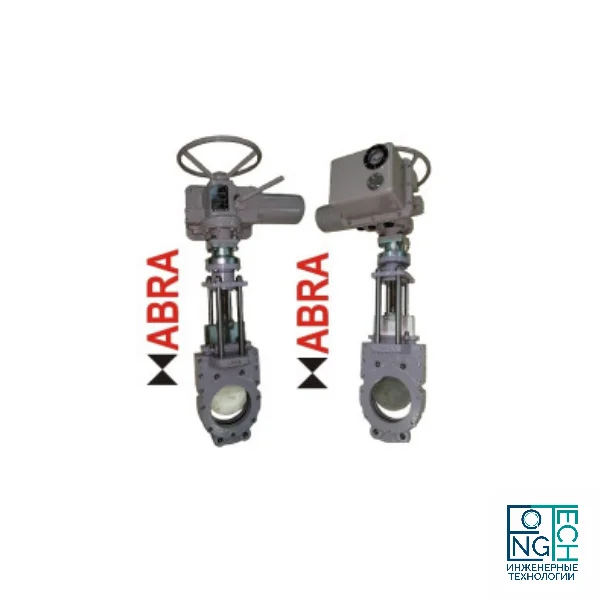 Двусторонние шиберные задвижки = затворы ножевые ABRA-KV-03 DN050-600, PN10/16 под электропривод