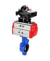 Затвор дисковый поворотный DN.ru WBV0232E-2W-Fb-H Ду32 Ру16, корпус - алюминиевый сплав, диск - нержавеющая сталь 316L, уплотнение - EPDM, с пневмоприводом DN.ru PA-DA-065 двойного действия, с БКВ APL-210N