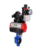 Затвор дисковый поворотный DN.ru WBV0232E-2W-Fb-H Ду32 Ру16, корпус - алюминиевый сплав, диск - нержавеющая сталь 316L, уплотнение - EPDM, с пневмоприводом DN.ru PA-SA-083, пневмораспределителем 4М310-08 24В NAMUR, БКВ APL-210N, БПВ AFC2000