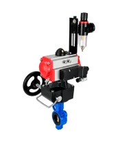 Затвор дисковый поворотный DN.ru WBV0232E-2W-Fb-H Ду32 Ру16, корпус - алюминиевый сплав, диск - нержавеющая сталь 316L, уплотнение - EPDM, с пневмоприводом PA-DA-065, пневмораспределителем 4М310-08 24В NAMUR, ручным дублером MON1-250-T26-ISO, БПВ AFC2000
