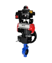 Затвор дисковый поворотный DN.ru WBV0232E-2W-Fb-H Ду32 Ру16, корпус - алюминиевый сплав, диск - нерж.сталь 316L, EPDM, с пневмоприводом PA-DA-065, пневмораспределителем 4М310-08 24В NAMUR, БКВ APL-410N EX, ручным дублером MON1-250-T26-ISO