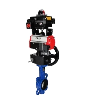 Затвор дисковый поворотный DN.ru WBV1432N-2W-Fb-H Ду80 Ру16, корпус - чугун GGG50, диск - нержавеющая сталь 316L, уплотнение - NBR, с пневмоприводом PA-DA-083, пневмораспределителем 4М310-08 24В NAMUR, БКВ APL-410N EX и ручным дублером MON2-450-T28-ISO