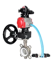 Затвор дисковый поворотный DN.ru WBV3232P-2W-Fb-H Ду80 Ру16, корпус - нержавеющая сталь 316L, диск - нержавеющая сталь 316L, PTFE, с пневмоприводом PA-DA-083, с пневмораспределителем 4V320-08 220В, с БКВ APL-210N, с ручным дублером MON2-450-T28-ISO с сертификатами качества. Доставка. Гарантия. В наличии! Звоните!