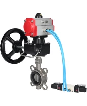 Затвор дисковый поворотный DN.ru WBV3232V-2W-Fb-H Ду80 Ру16, корпус - нержавеющая сталь 316L, диск - нержавеющая сталь 316L, уплотнение - Viton, с пневмоприводом PA-DA-083, с пневмораспределителем 4V320-08 220В, с ручным дублером MON2-450-T28-ISO