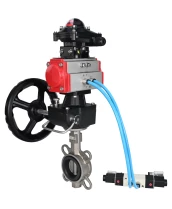 Затвор дисковый поворотный DN.ru WBV3232V-2W-Fb-H Ду65 Ру16, корпус - нержавеющая сталь 316L, диск - нержавеющая сталь 316L, Viton, с пневмоприводом PA-DA-065, с пневмораспределителем 4V320-08 220В, с БКВ APL-210N, с ручным дублером MON1-250-T26-ISO