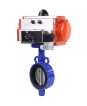 Затвор дисковый поворотный DN.ru WBV0232E-2W-Fb-H Ду32 Ру16, корпус - алюминиевый сплав, диск - нержавеющая сталь 316L, уплотнение - EPDM, с пневмоприводом DN.ru PA-DA-065 двойного действия, с пневмораспределителем 4V320-08 220В Иваново