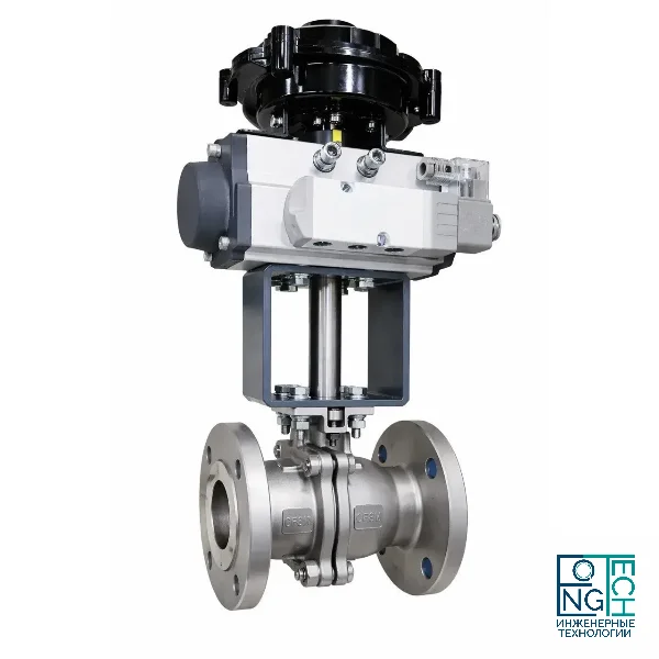 Кран оснащён пневматическим приводом, обеспечивающим быстрое и надёжное открытие/закрытие потока. Привод позволяет интегрировать изделие в автоматизированные системы управления и дистанционного контроля, повышая эффективность и безопасность технологических процессов.